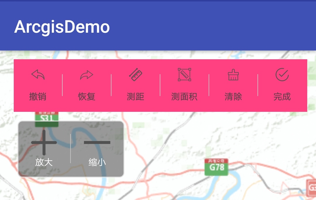 控件的功能包括,测距、测面积、撤销、恢复、清除、完成六个功能。